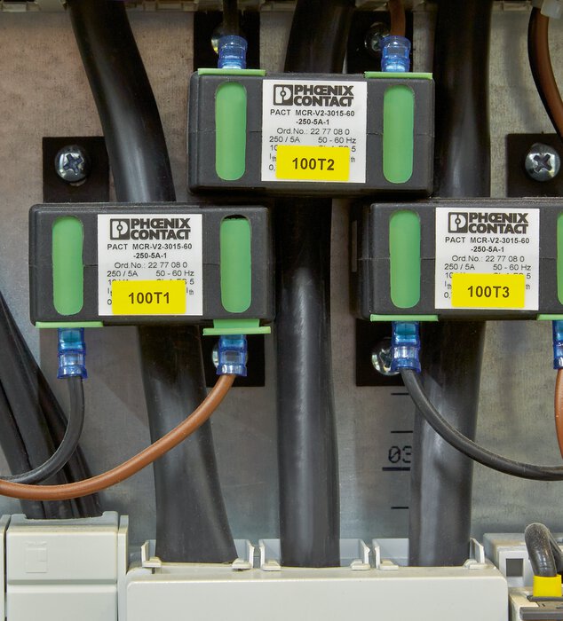 电流互感器可根据不同的传动比转换交流电流。而安装在下级的电能监测设备则可直接在控制柜中记录和显示参数。